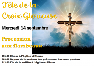 En cette occasion, une messe pour célébrer la Croix Glorieuse aura lieu mercredi 14 septembre à l’église Saint-Pierre à 19h, suivie d’une procession aux flambeaux à 20h30.