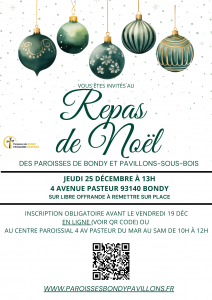 Nous avons le plaisir de vous convier à notre traditionnel repas de Noël, offert par les paroisses de Bondy et des Pavillons-sous-Bois !